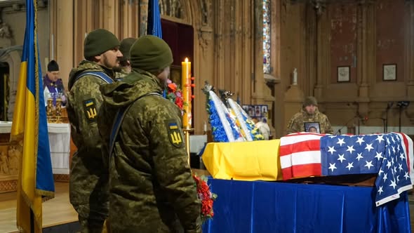 W Kościele św. Mikołaja w Kijowie odbyły się uroczystości pogrzebowe poległego obrońcy Ukrainy Tajrona. W
