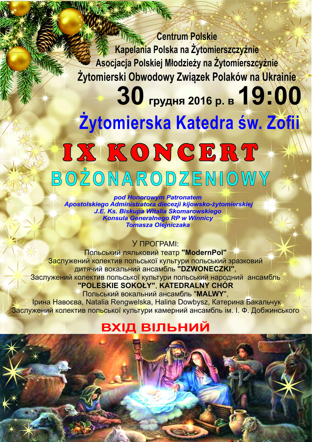 30 січня 2016 року в Кафедральному Костьолі св. Зофії відбувся IX Різдвяний Концерт під