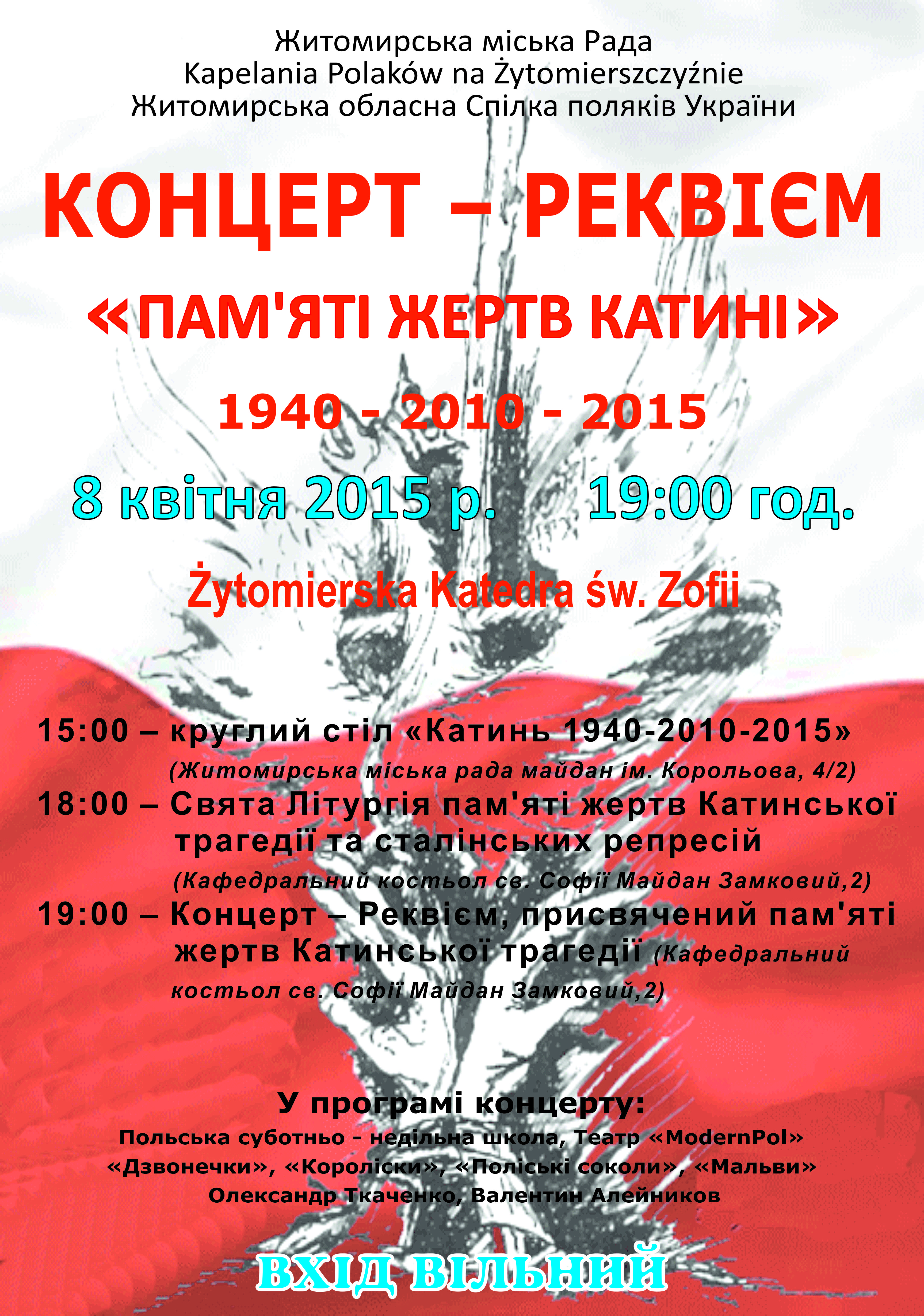 Żytomierski Obwodowy Związek Polaków na Ukrainie zaprasza wspólnie uczcić pamięć pomordowanych w Katyniu, Charkowie i