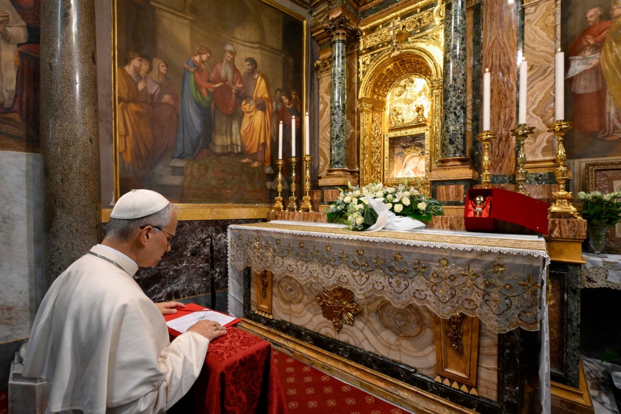 Papież w sanktuarium maryjnym na Mentorelli – ulubionym miejscu Jana Pawłą II (@Vatican Media)
