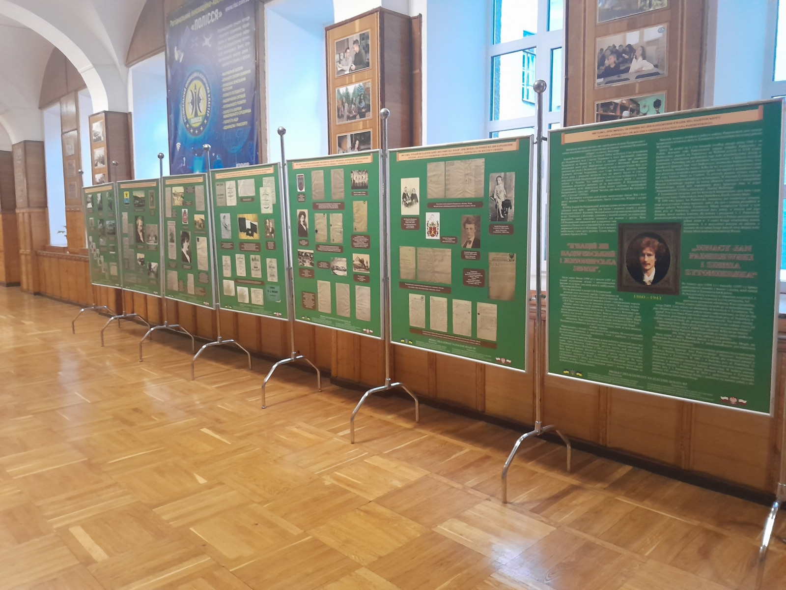 Wystawę można oglądać na drugim piętrze głównego budynku Poleskiego Narodowego Uniwersytetu przy ul. Stary Bulwar 7.
